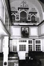 | Die dreiseitig umlaufende Emporenanlage zieht den Turm als Standort der Orgel ein in den Kirchenraum. Die erste Orgel der Kirche, gebaut 1727, wurde in die neugebaute Kirche übernommen. Im Jahre 1846 wurde eine neue Orgel eingeweiht, die der Orgelbauer A. v. Werder aus Elliehausen gebaut hatte. Sie wurde beim Brand am 07. November 1999 völlig zerstört. Klappbare Fenster trennten vom Kirchenraum die ebenerdige Turmvorhalle ab, von der aus die beiden Treppen zur Orgelempore, den beiden Seitenemporen und dem Turm führten. |